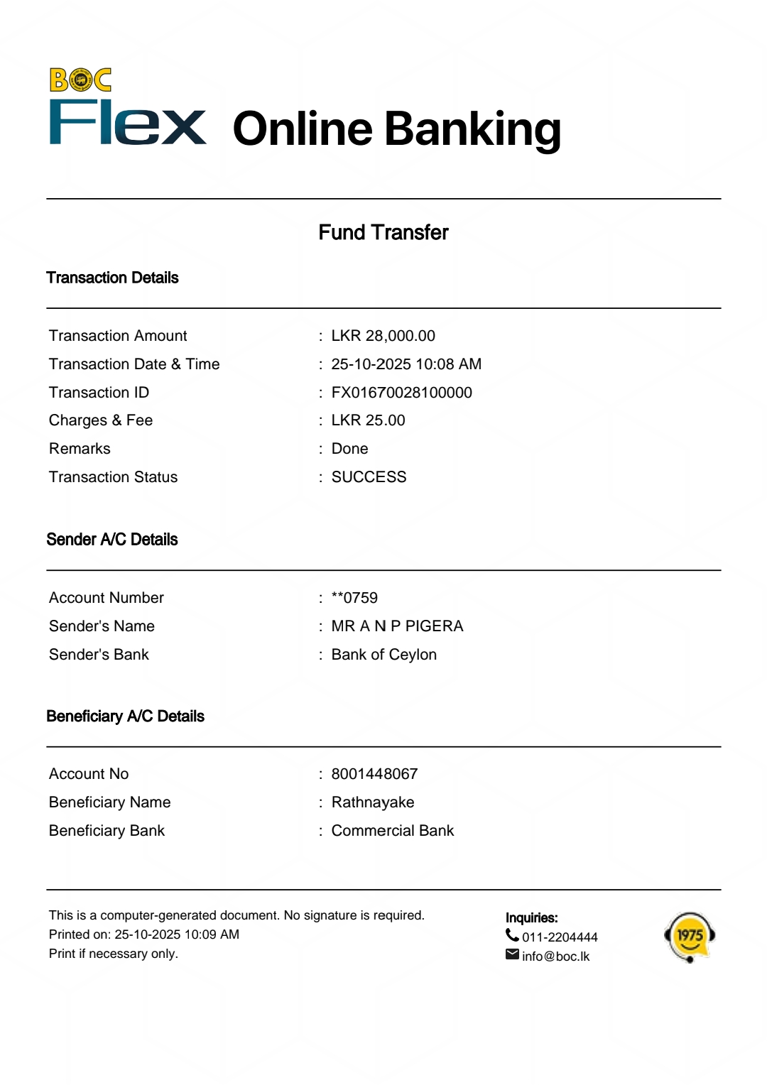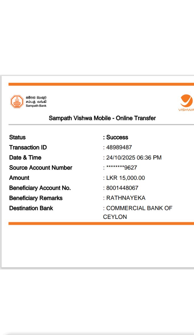 | 8 | DSA2425 | A.S.D Dhanushka Madusanka | 0702225550 | dhanushkajayadj@gmail.com | BIG vip | Bank Transfer | Confirmed | - |