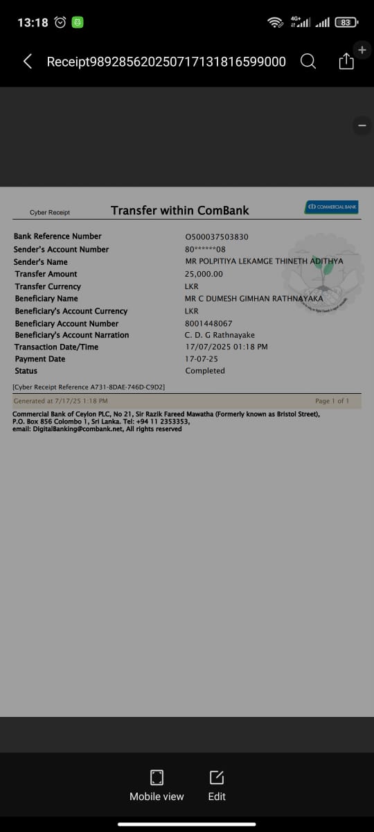 | 8 | DSA1269 | Naseer Mohamed Ishaq | 0762366610 | ishaqjov@gmail.com | BIG vip | Bank Transfer | Confirmed | - |