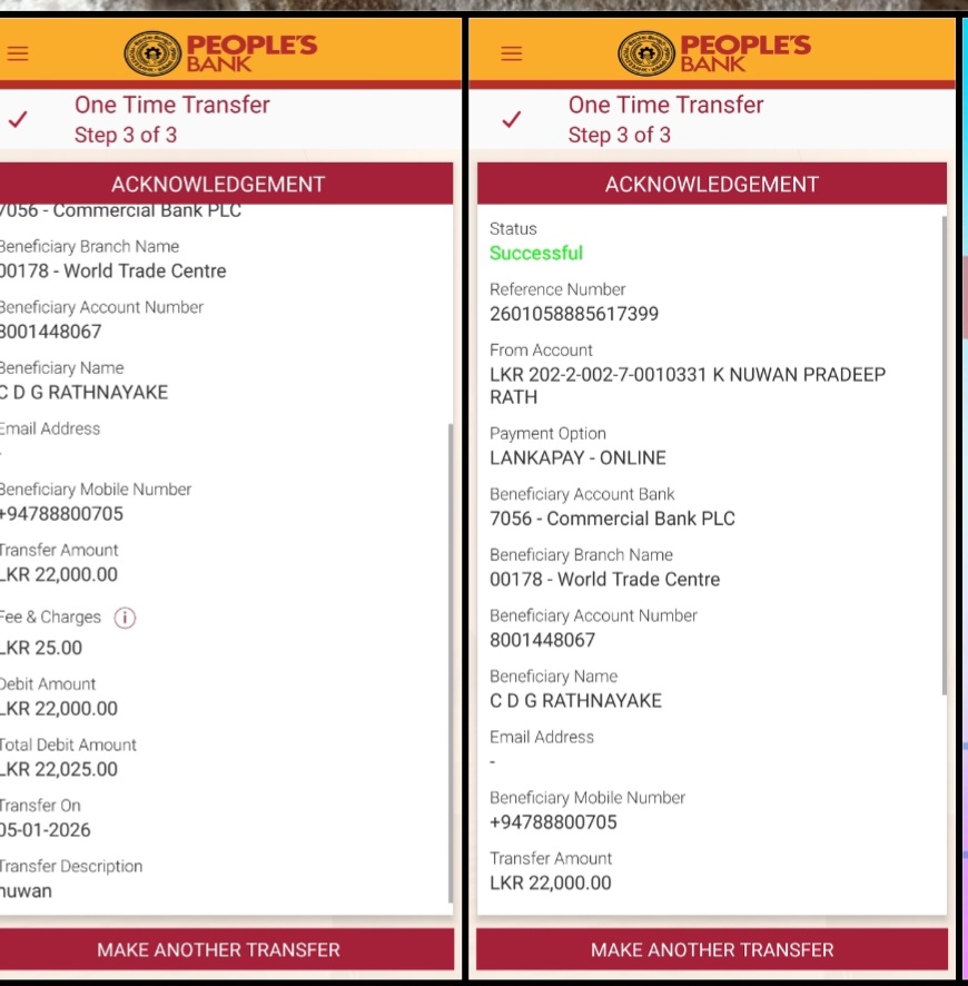 | 5 | DSA2560 | L.A Amila sanjaya | 0774111956 | sanjayalaa@gmail.com | BIG vip | Bank Transfer | Confirmed | - |